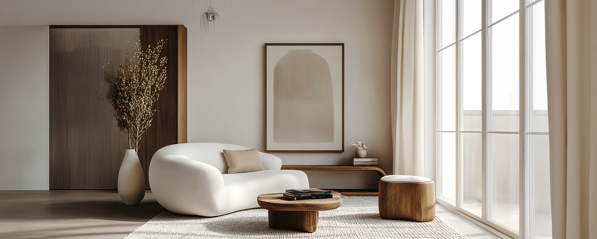 Sahara – Canapé 2 Places Sculptural en Tissu Sablé Miel