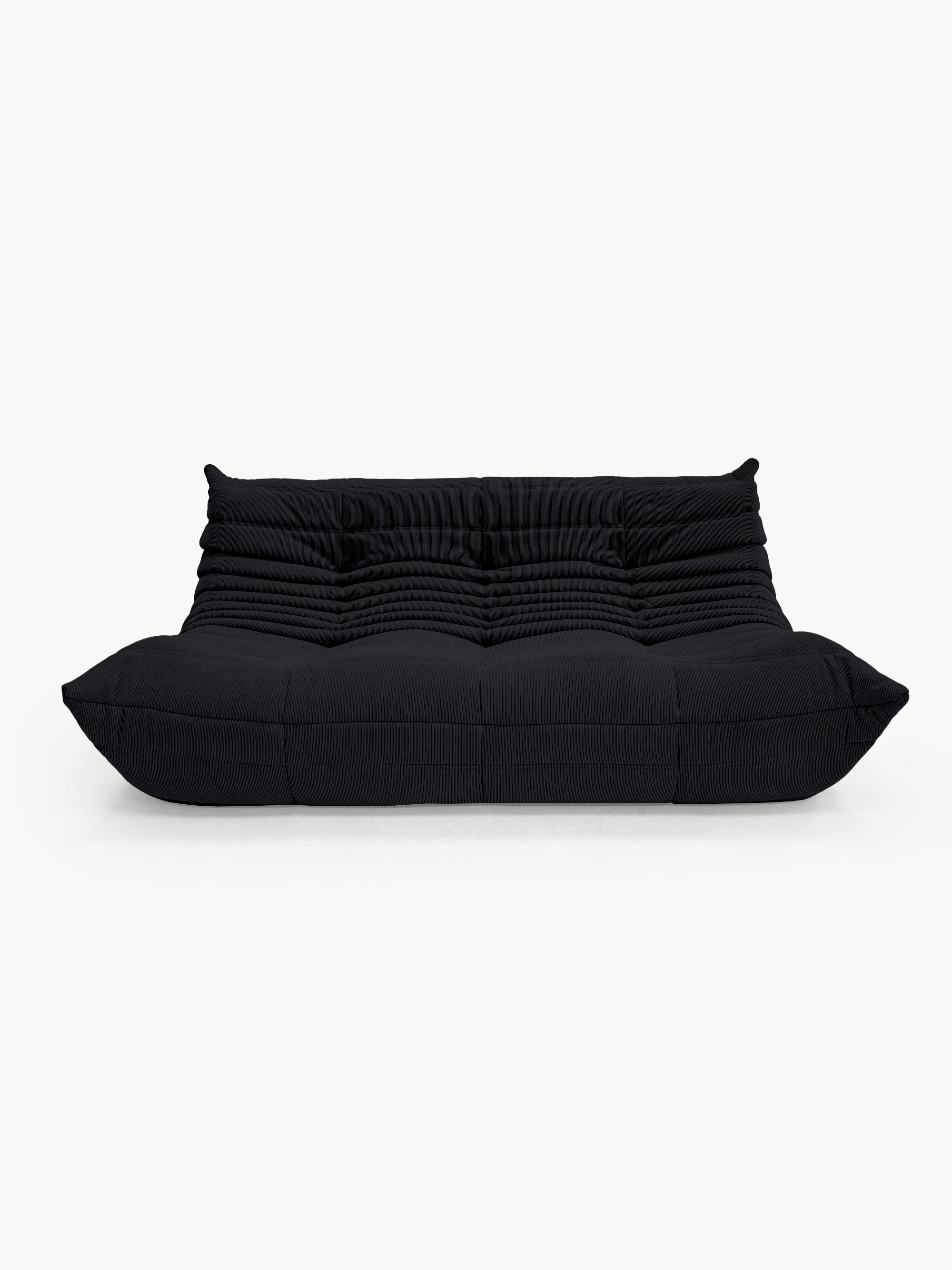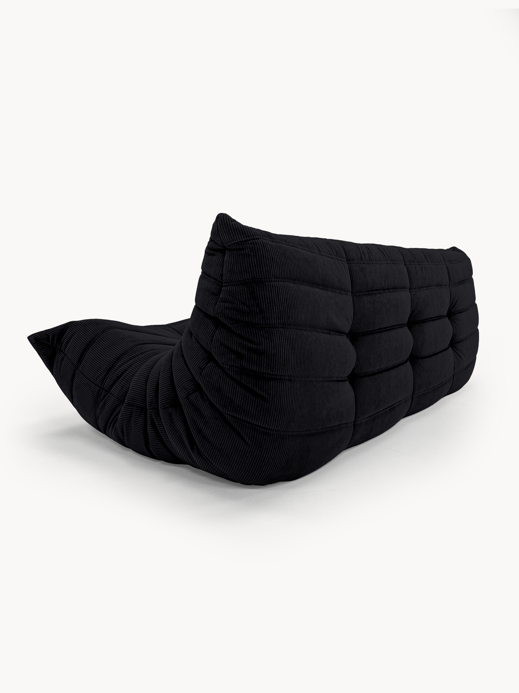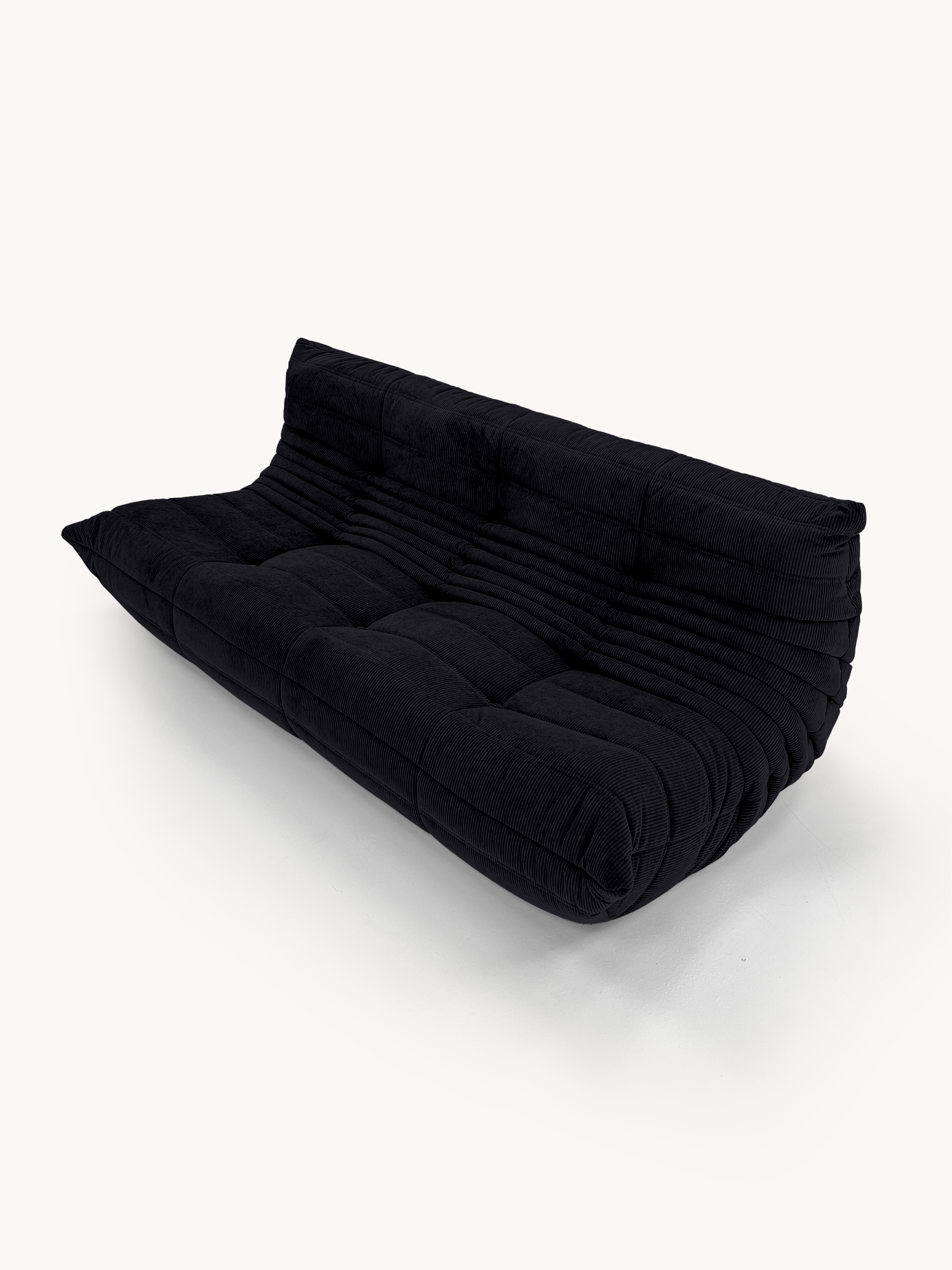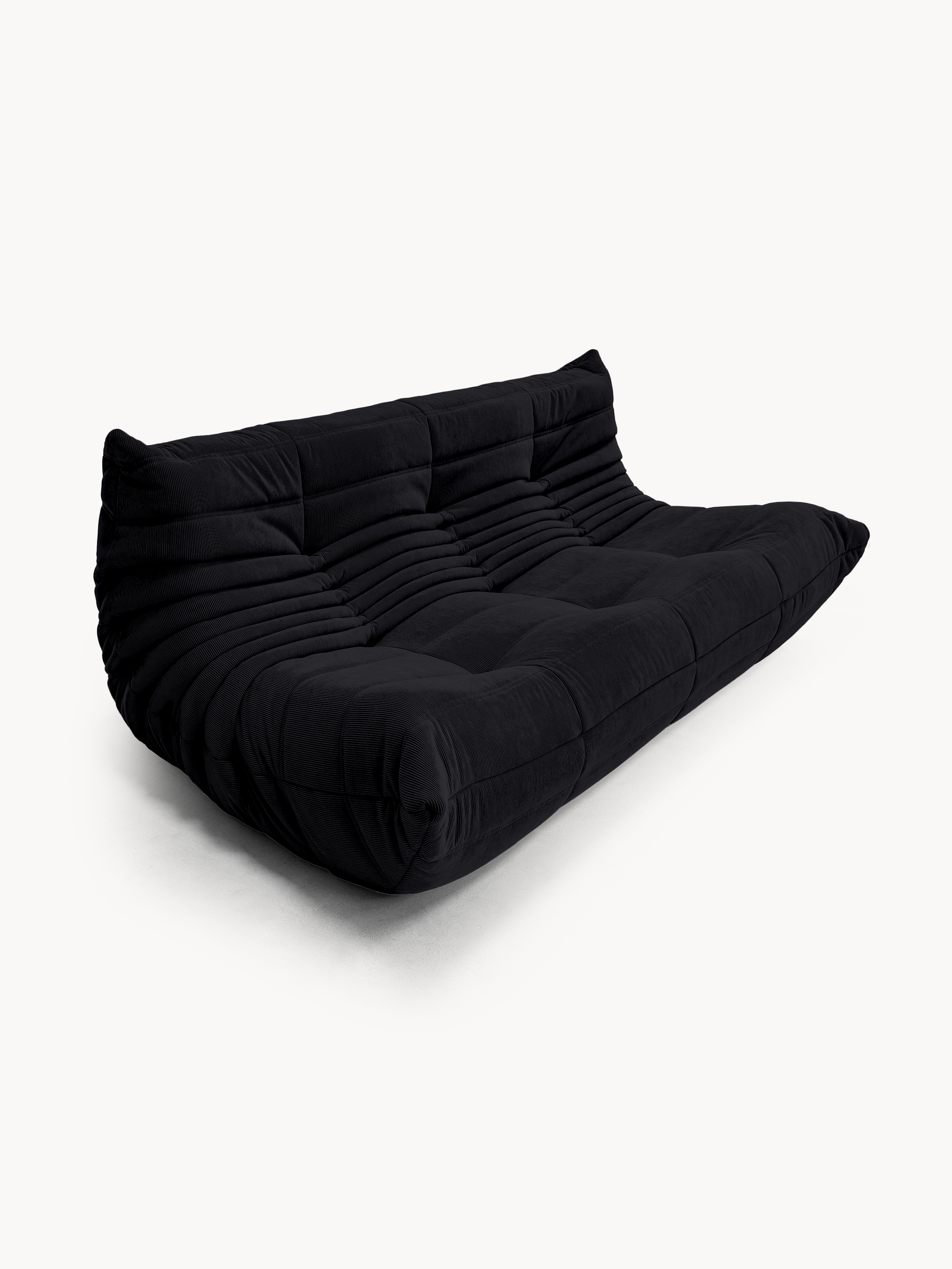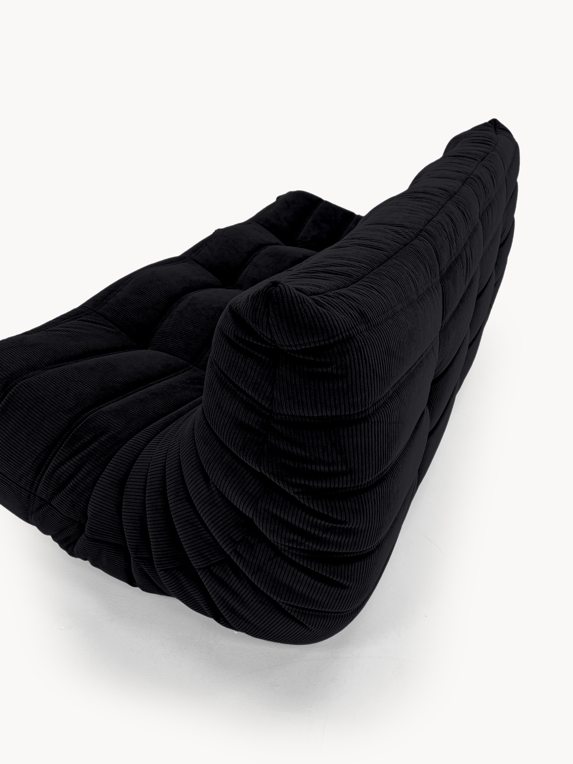 Sa structure généreuse épouse les lignes du corps tout en offrant un soutien enveloppant, idéal pour trois personnes. Le velours côtelé, à la fois dense et doux au toucher, révèle une texture profonde qui capte subtilement la lumière et souligne l’élégance naturelle de ses formes. Chaque assise, rembourrée de mousse mémoire haute résilience, garantit un confort durable et un maintien équilibré.