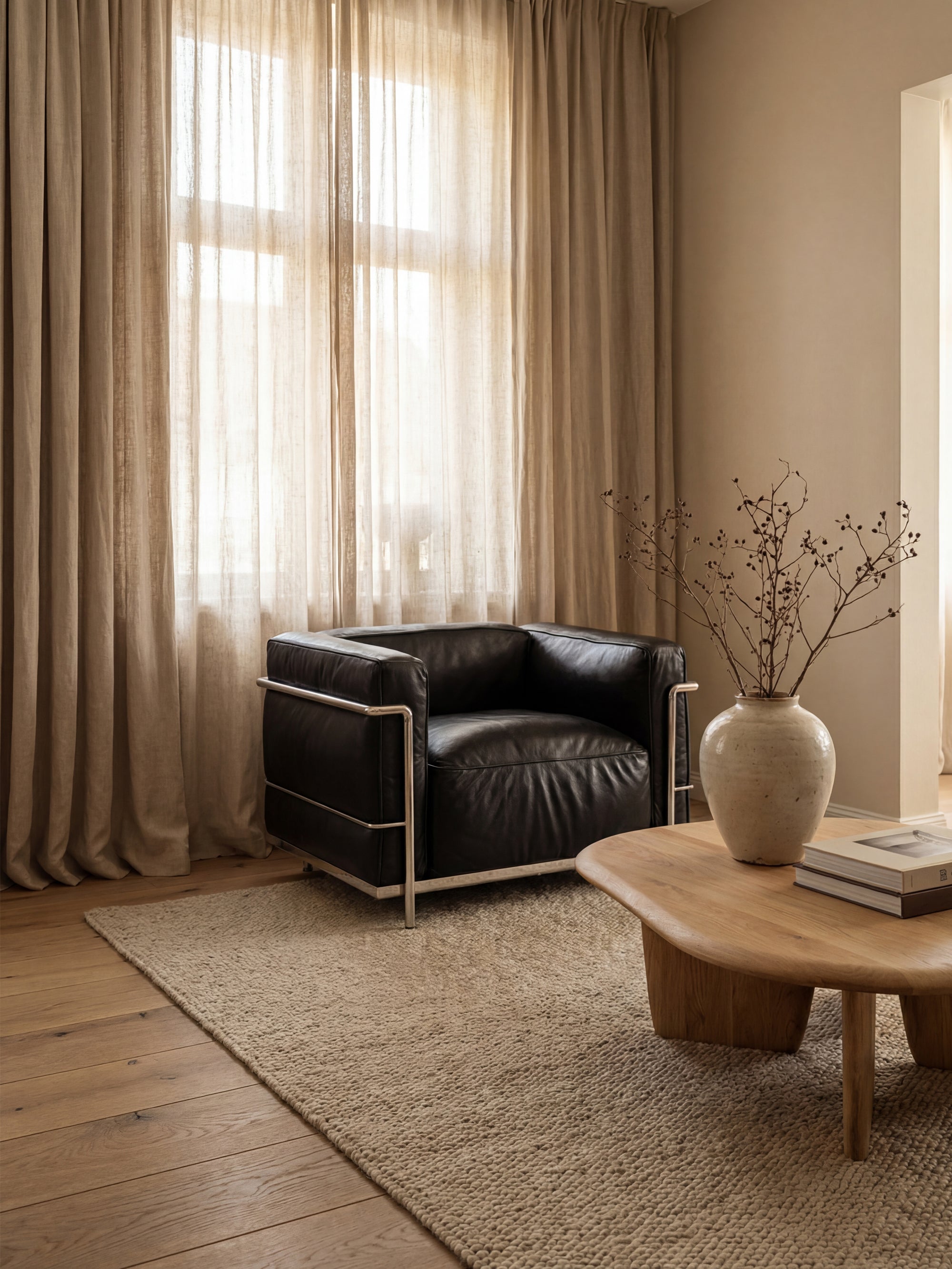 Son assise profonde et ses coussins généreusement rembourrés créent une sensation enveloppante, à la fois structurée et fluide. Parfait pour les intérieurs minimalistes, contemporains ou inspirés du design Bauhaus.