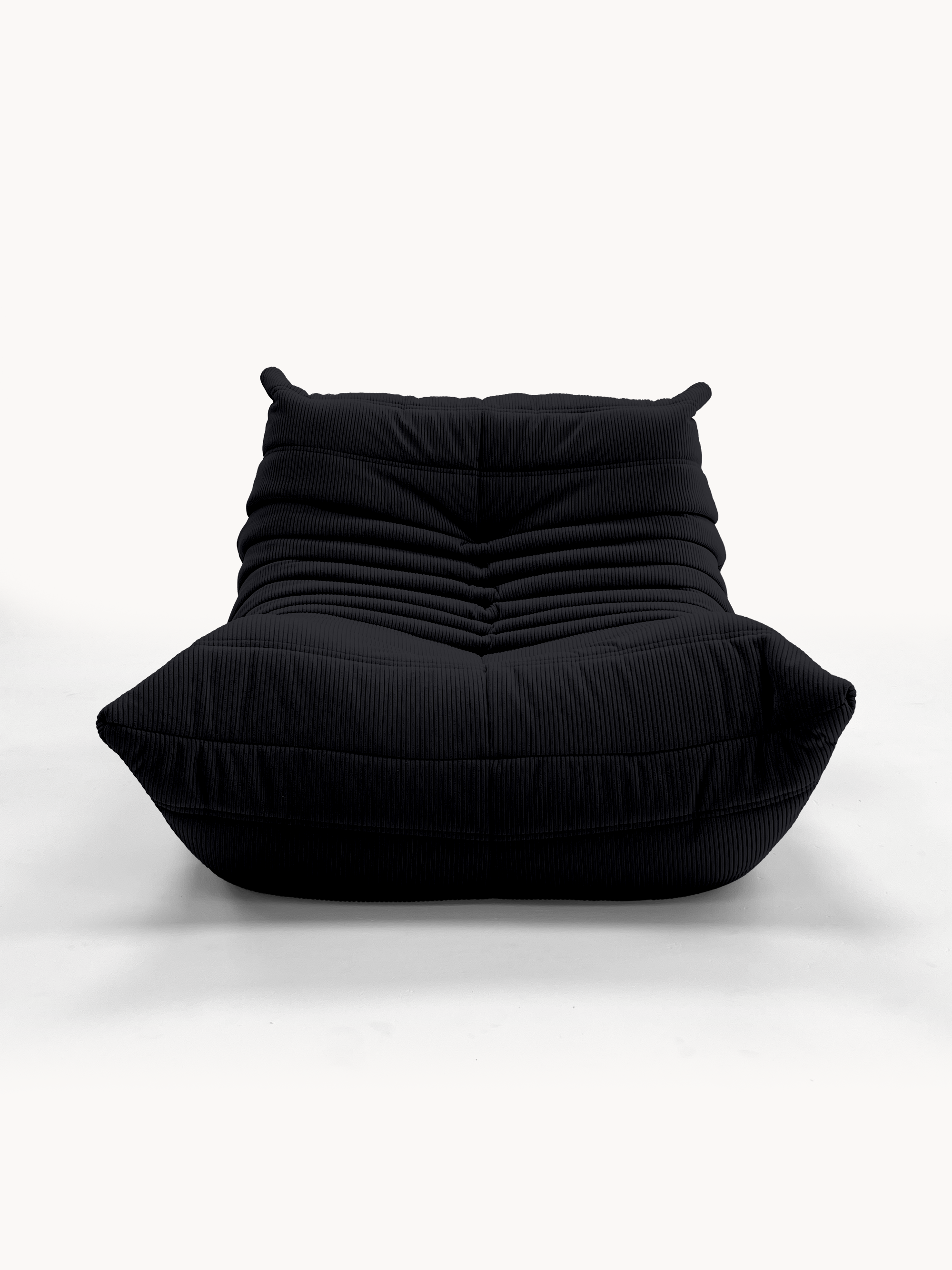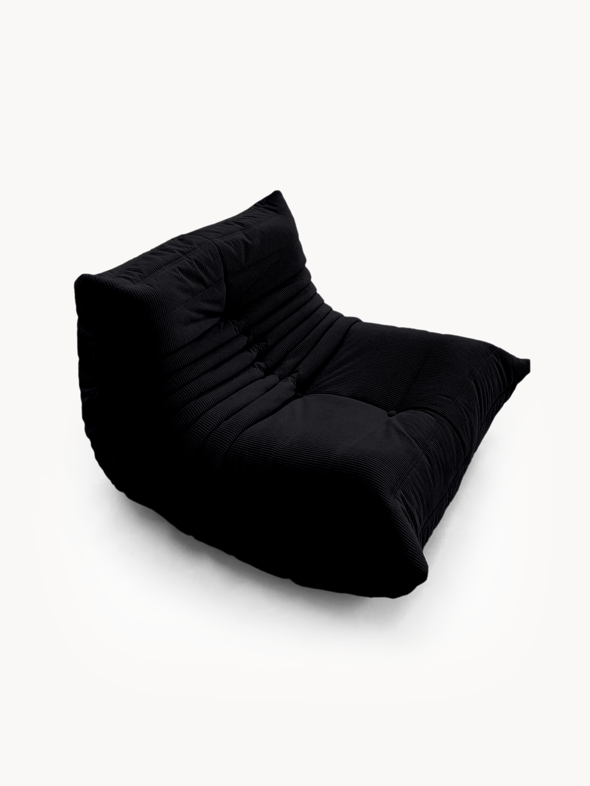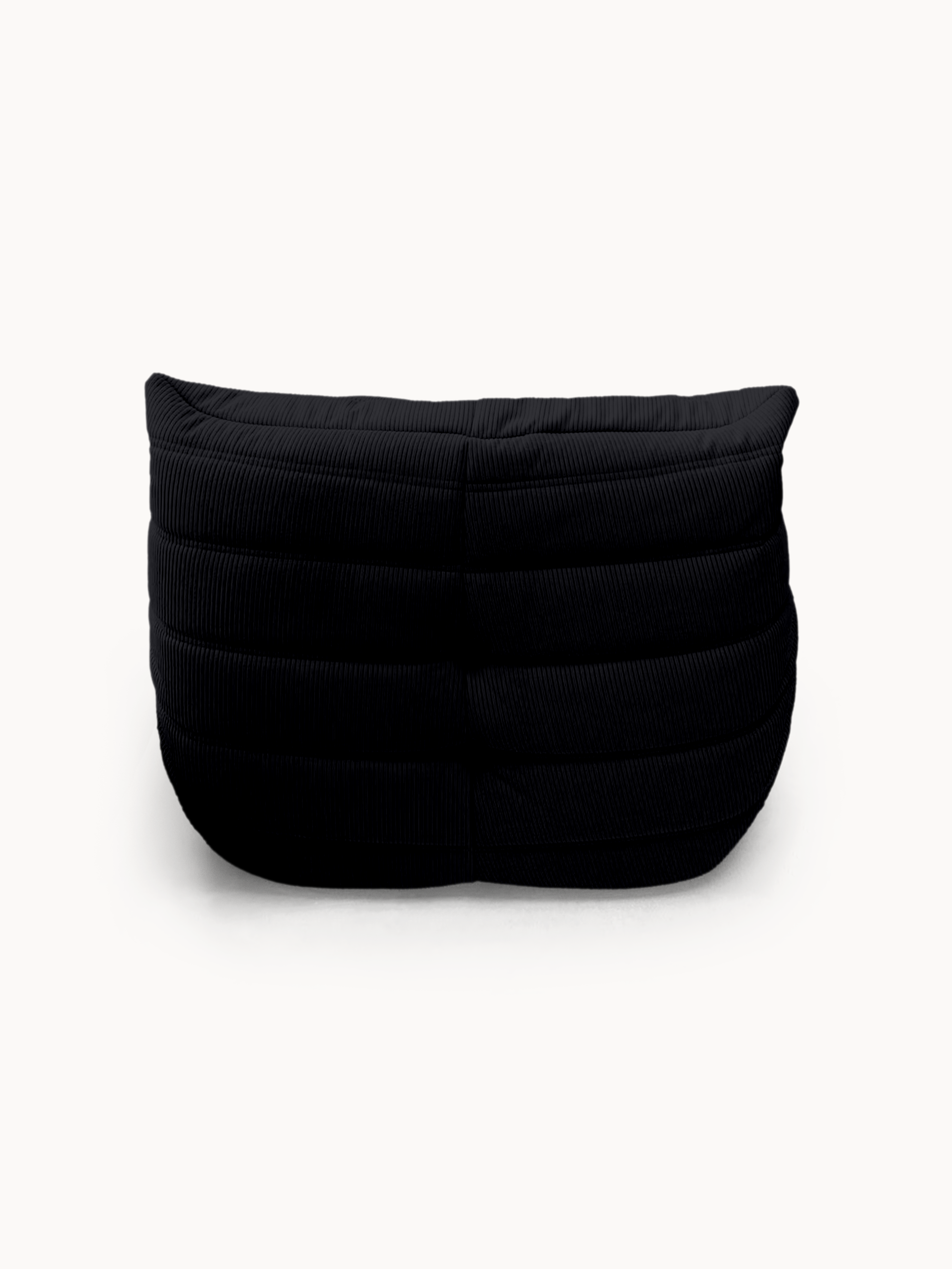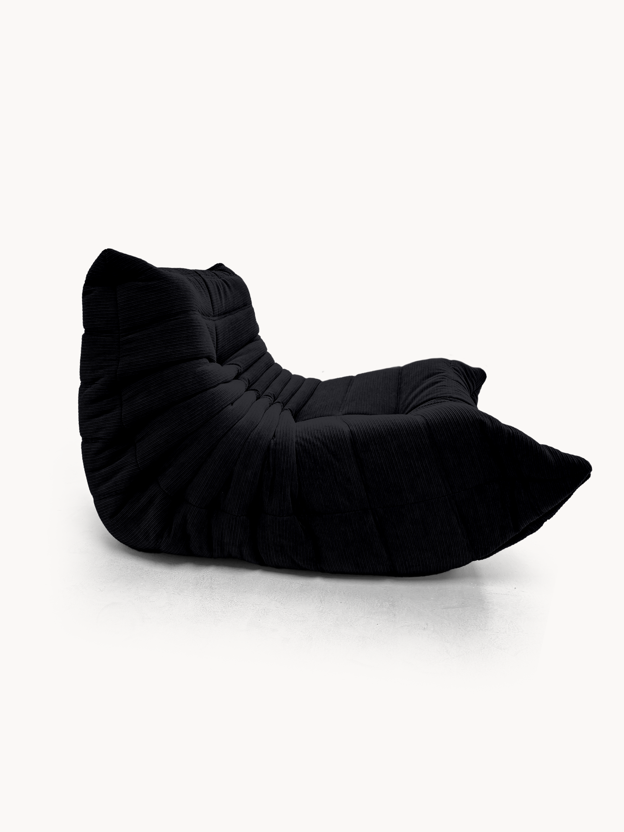De lage, royaal gewatteerde structuur volgt de vormen van het lichaam en biedt ideale ondersteuning voor lange momenten van ontspanning. Het ribfluweel, zacht aanvoelend en visueel getextureerd, versterkt de diepte van de lijnen en geeft elke kleur een verfijnde, natuurlijke glans.
